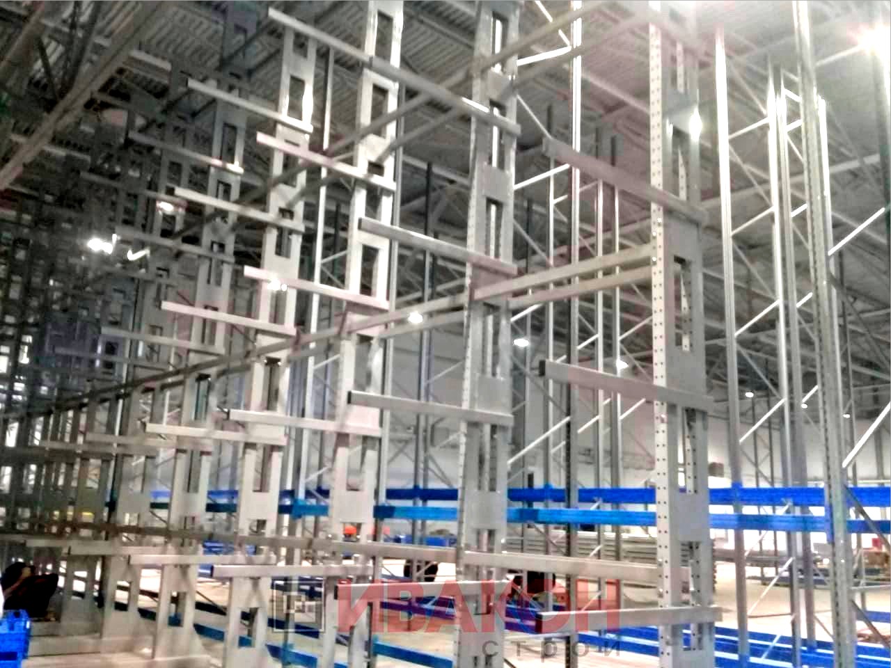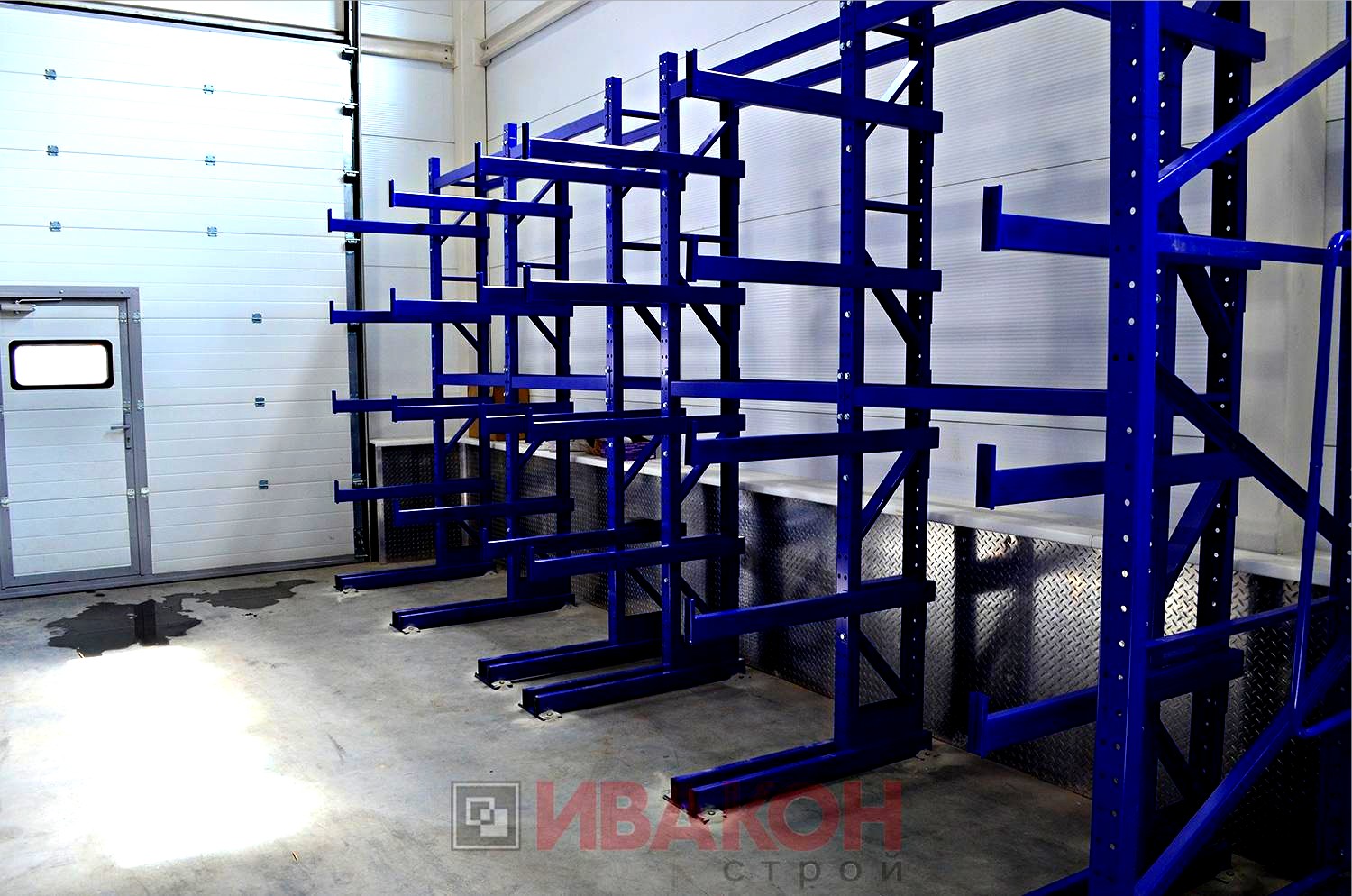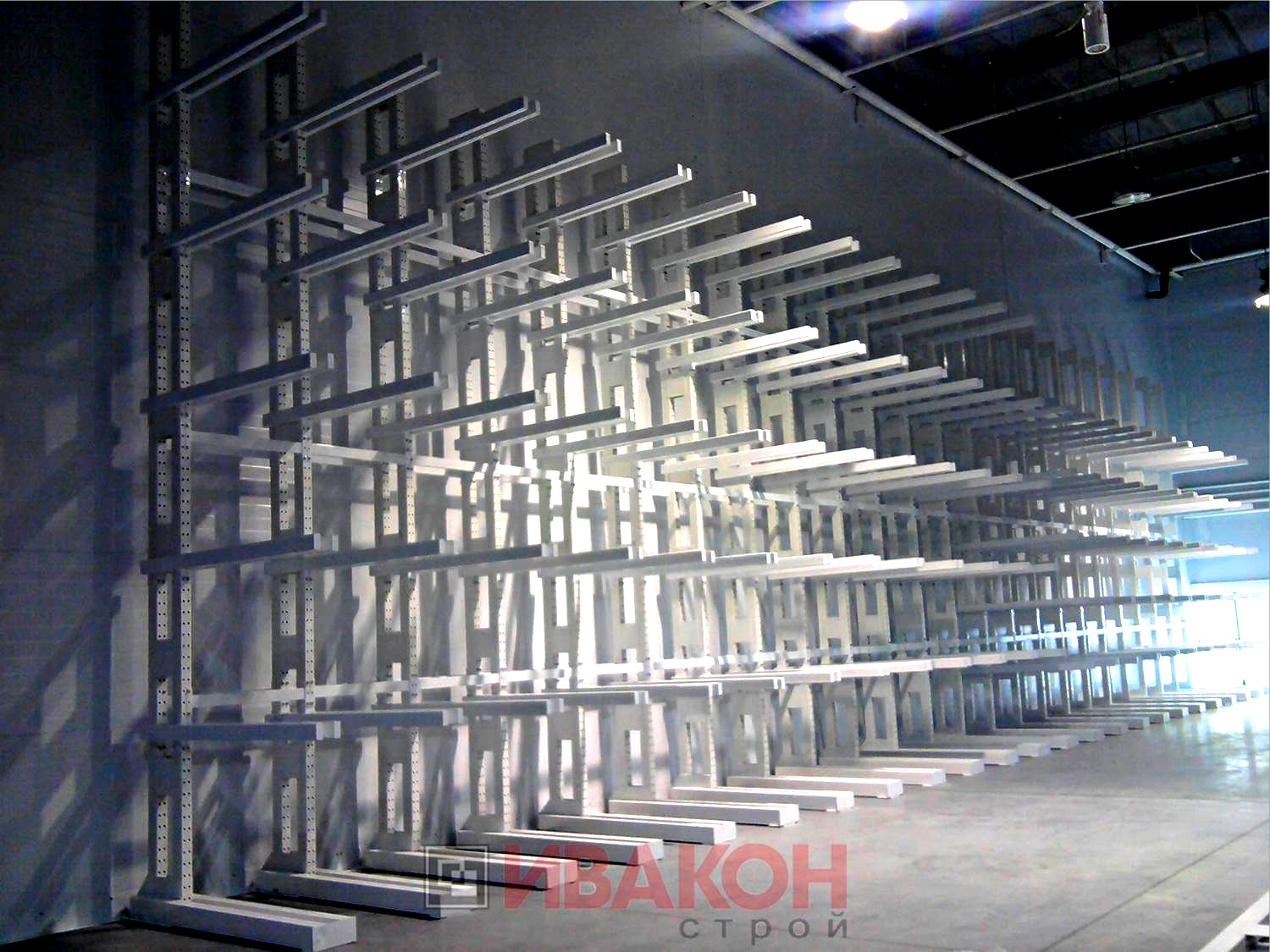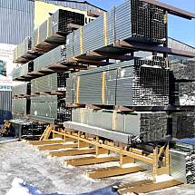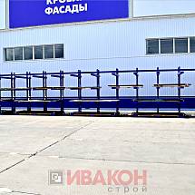 Стойки представляют собой сварную конструкцию в виде рамы-стойки, состоящую из двух стоек с размером профиля 80*55*3 мм. и приваренных к ним связей/раскосов, глубиной 400 мм. Высота расположения консолей регулируется с шагом 75 мм. Высота стоек варьируется от 2000 мм. до 7000 мм. В зависимости от основания, стойки рассчитаны под два вида нагрузок: до 2 тонн и до 5 тонн.