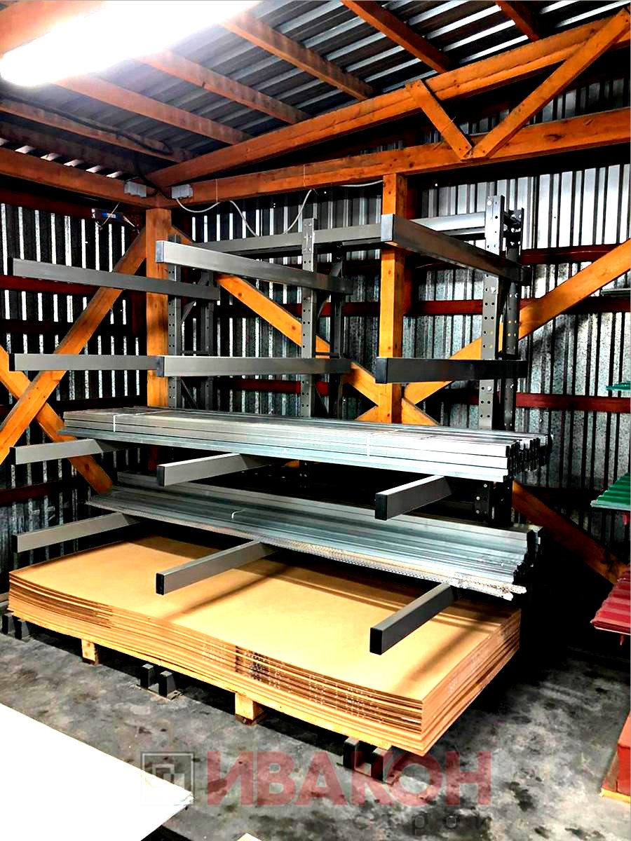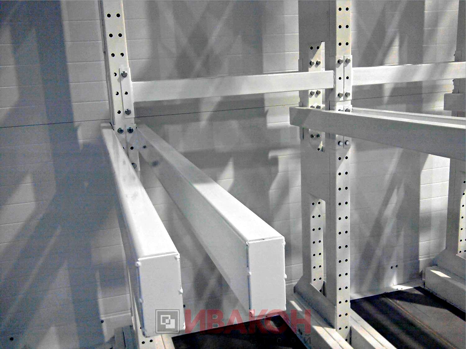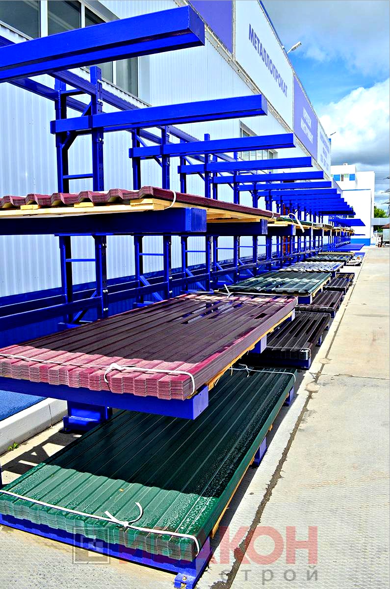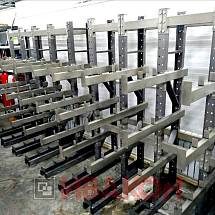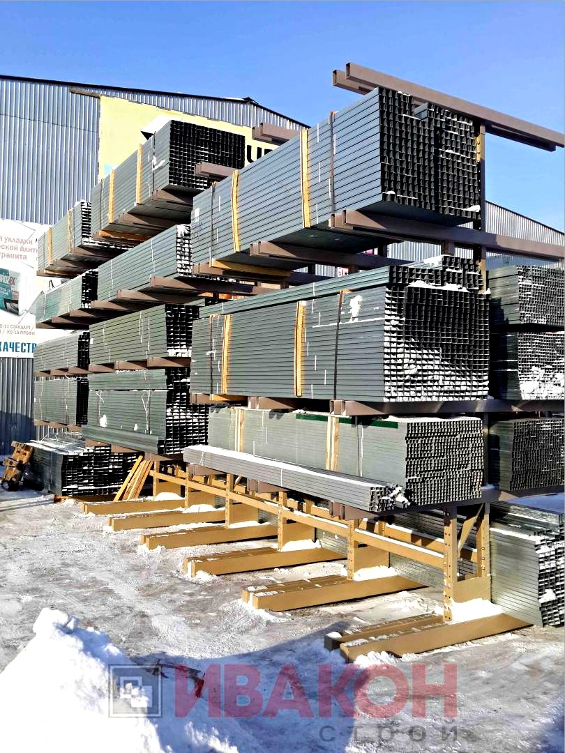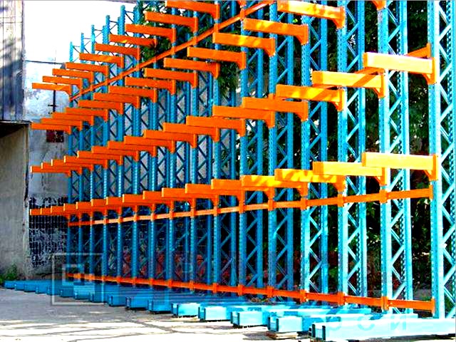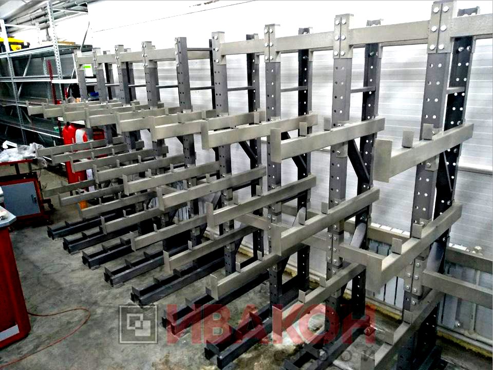 изготавливаются из труб 80*40мм и 100*50 мм. с толщиной стенки 3 мм., швеллера 12П и 14П, и подбираются в зависимости от нагрузок. Также, для достижения необходимой нагрузки, используются сдвоенные консоли. Две консоли устанавливаются параллельно с двух сторон стойки, тем самым достигается гарантированная нагрузка. Длина консолей вирируется от 400 мм. до 1500 мм. Окрашены полимерной порошковой краской.