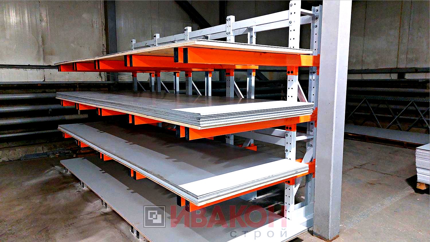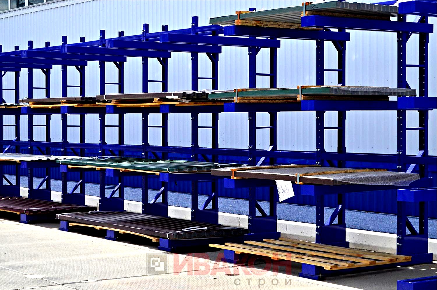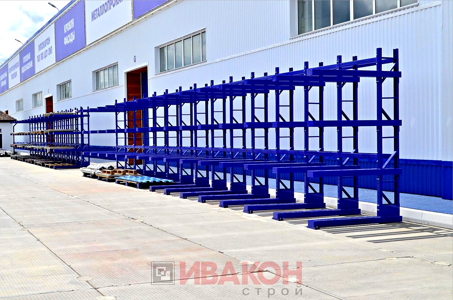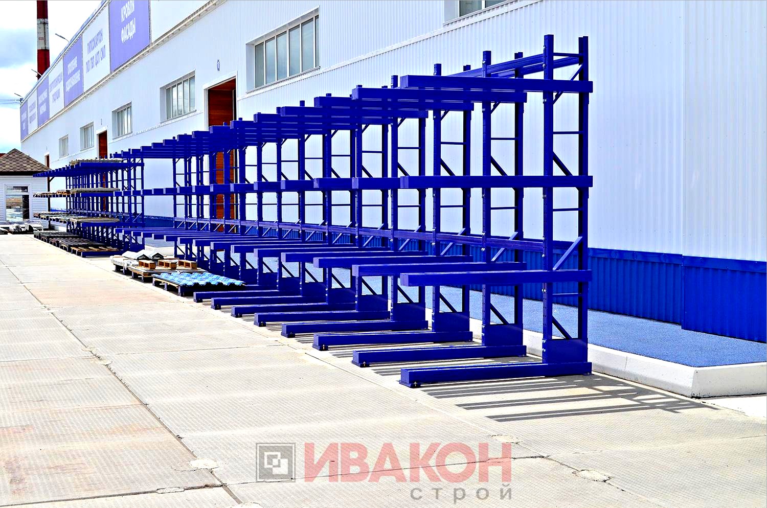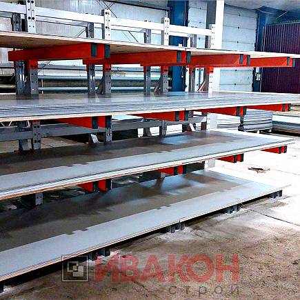 изготавливаются из труб 80*40мм и 100*50 мм. с толщиной стенки 3 мм., швеллера 12П и 14П, и подбираются в зависимости от нагрузок. Также, для достижения необходимой нагрузки, используются сдвоенные консоли. Две консоли устанавливаются параллельно с двух сторон стойки, тем самым достигается гарантированная нагрузка. Длина консолей вирируется от 400 мм. до 1500 мм. Окрашены полимерной порошковой краской.